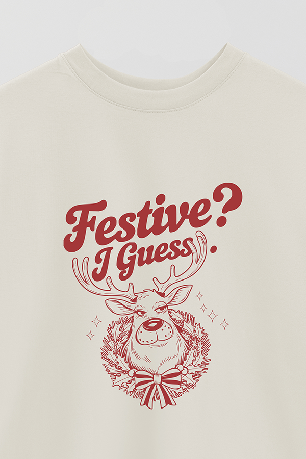 REMERA OVERSIZE ESTAMPADA SARCASTIC XMAS FESTIVE I GUESS