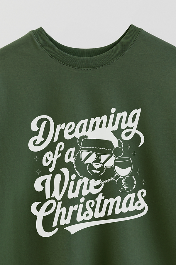 REMERA OVERSIZE ESTAMPADA SARCASTIC XMAS WINE CHRISTMAS