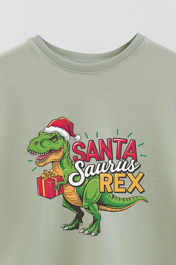 REMERA BASICA ESTAMPADA B XMAS SANTA SAURUS