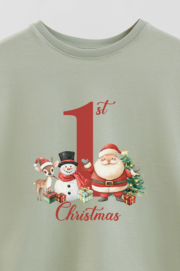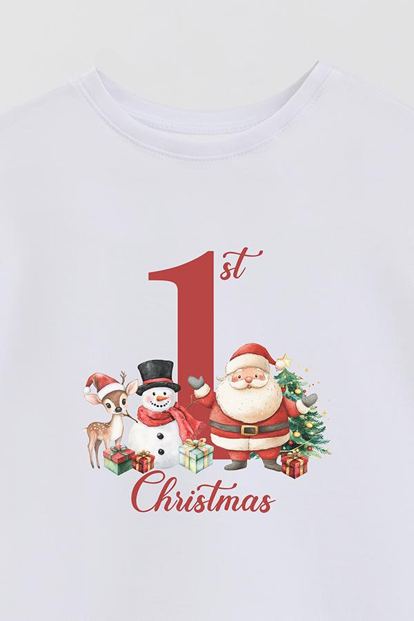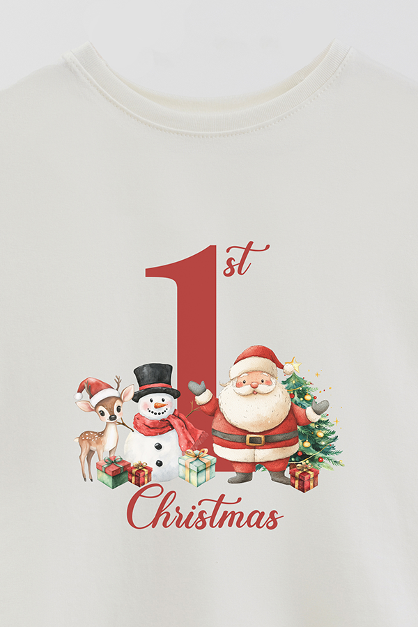REMERA BASICA ESTAMPADA FIRST CHRISTMAS SANTA