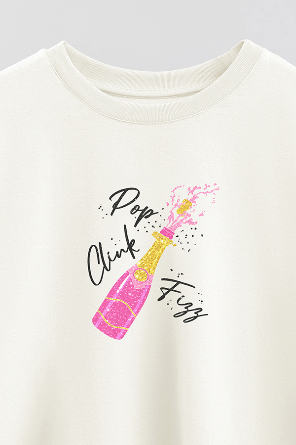 REMERA CROP ESTAMPADA NEW YEAR CHAMPAGNE