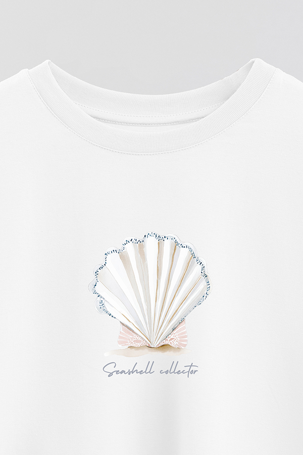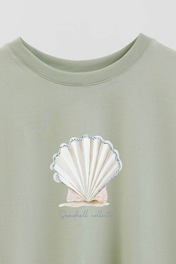 REMERA CROP ESTAMPADA COASTAL SEASHELL COLLECTOR