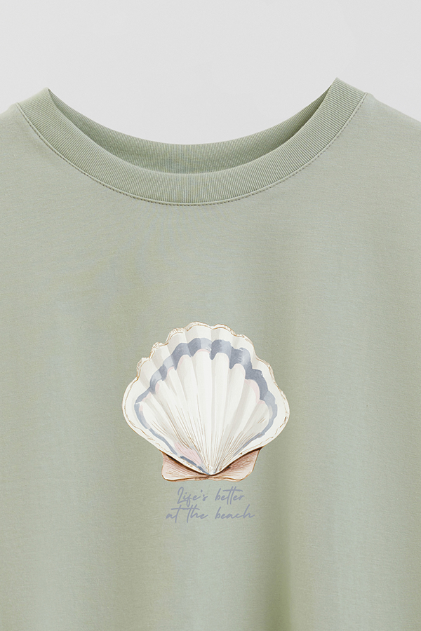REMERA CROP ESTAMPADA COASTAL LIFE'S BETTER AT THE BEACH
