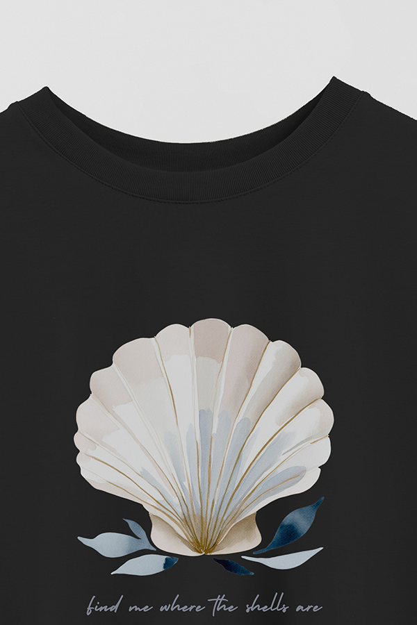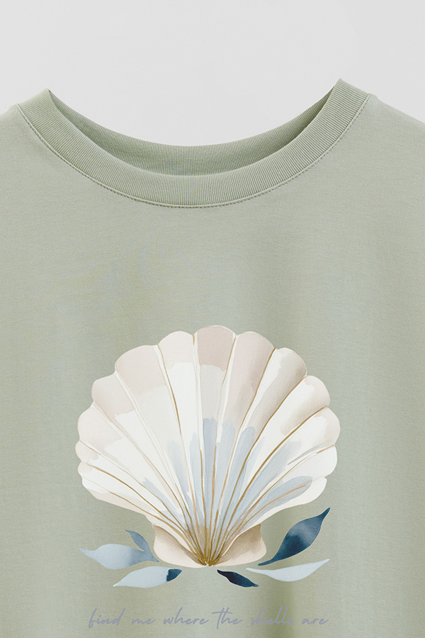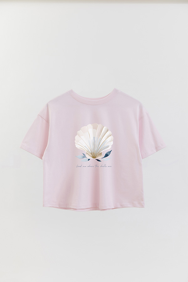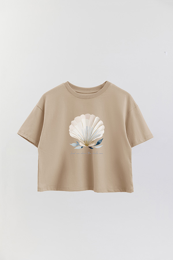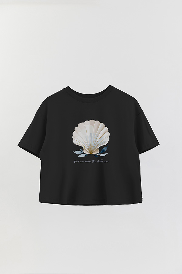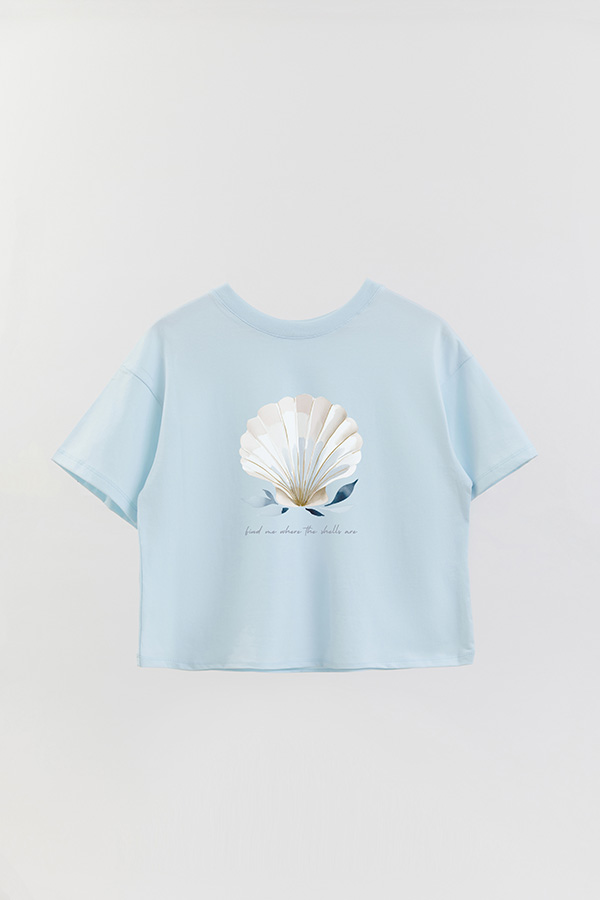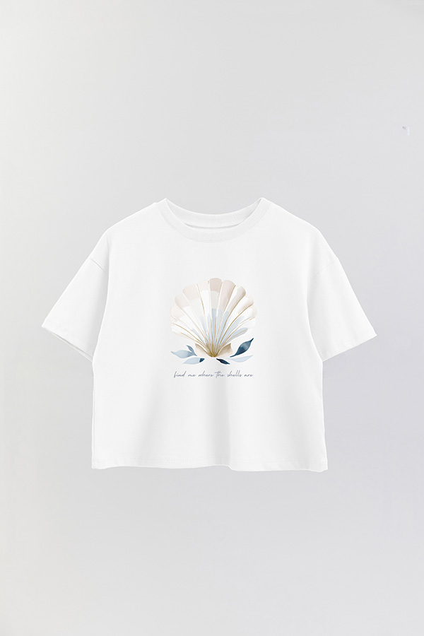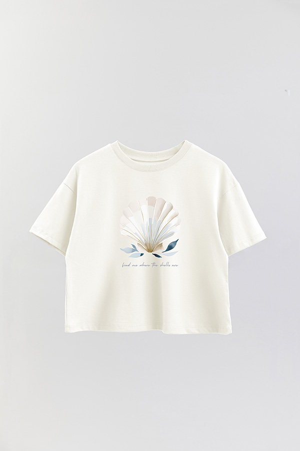 REMERA CROP ESTAMPADA COASTAL FIND ME WHERE THE SHELLS ARE