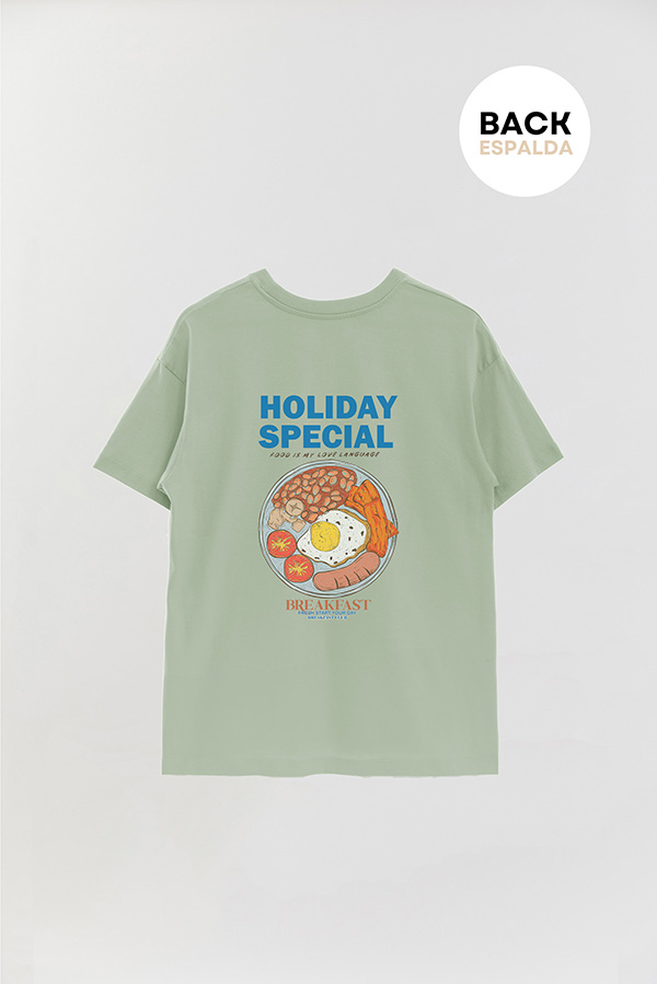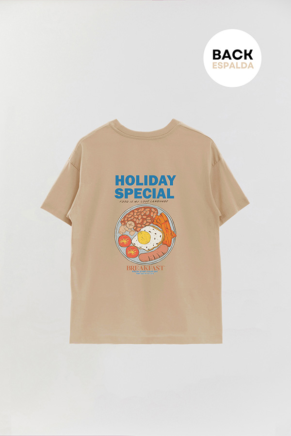REMERA OVER FB ESTAMPADA HOLIDAY SPECIAL BREAKFAST