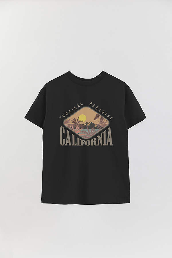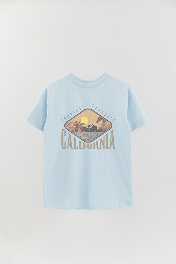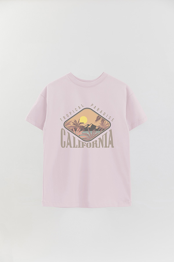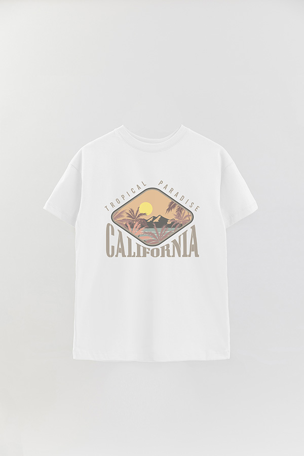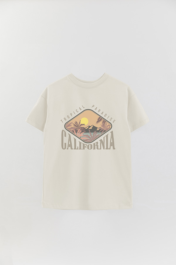 REMERA OVER ESTAMPADA TROPICAL PARADISE CALIFRONIA