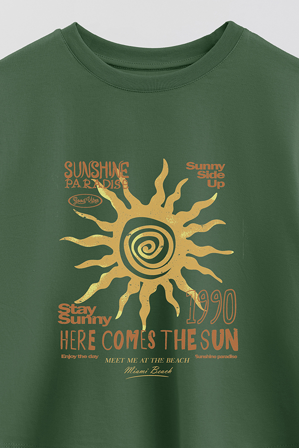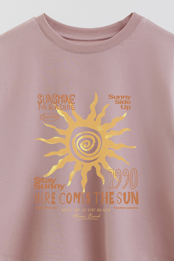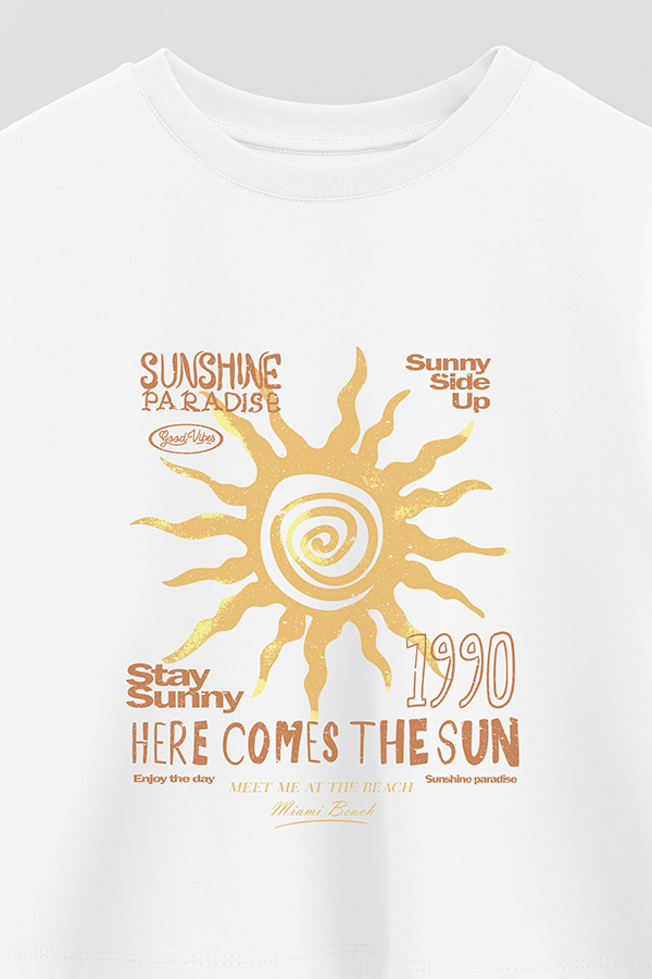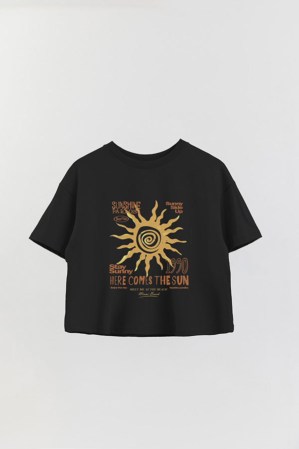 REMERA CROP ESTAMPADA HERE COMES THE SUN 1990