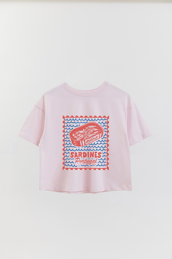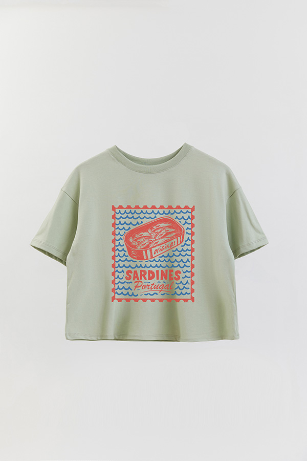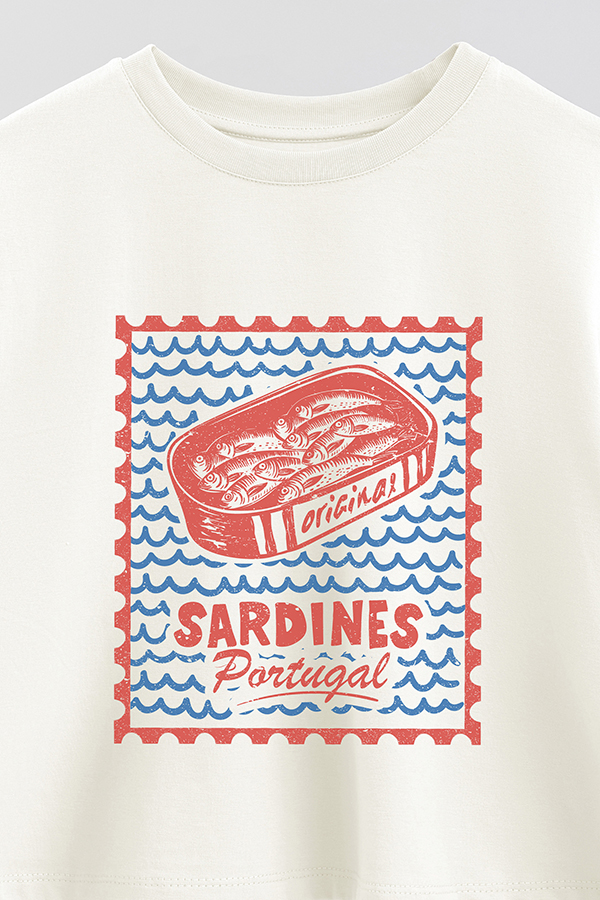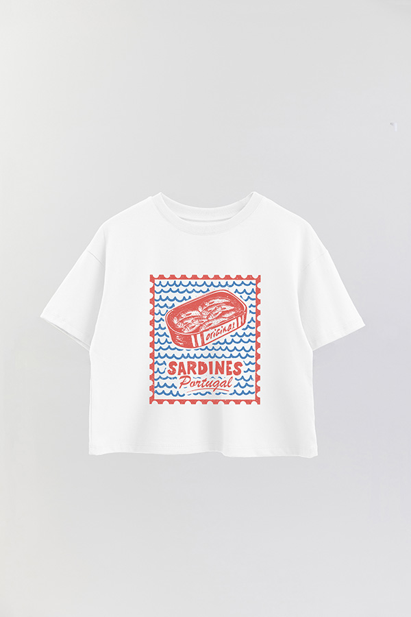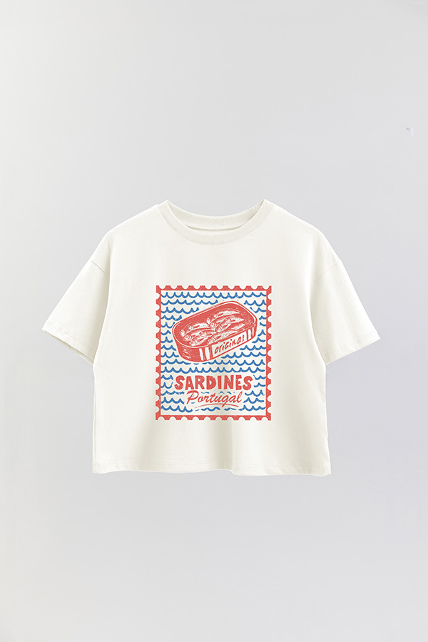 REMERA CROP ESTAMPADA SARDINES PORTUGAL