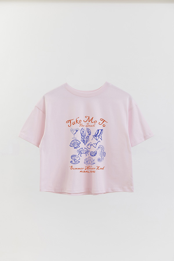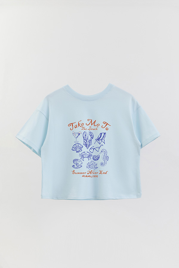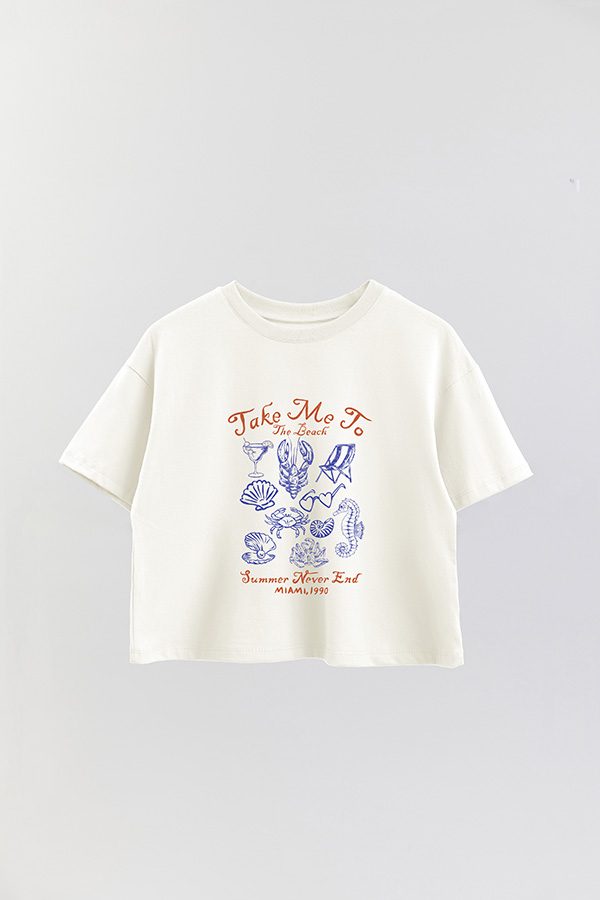 REMERA CROP ESTAMPADA TAKE ME TO THE BEACH 1
