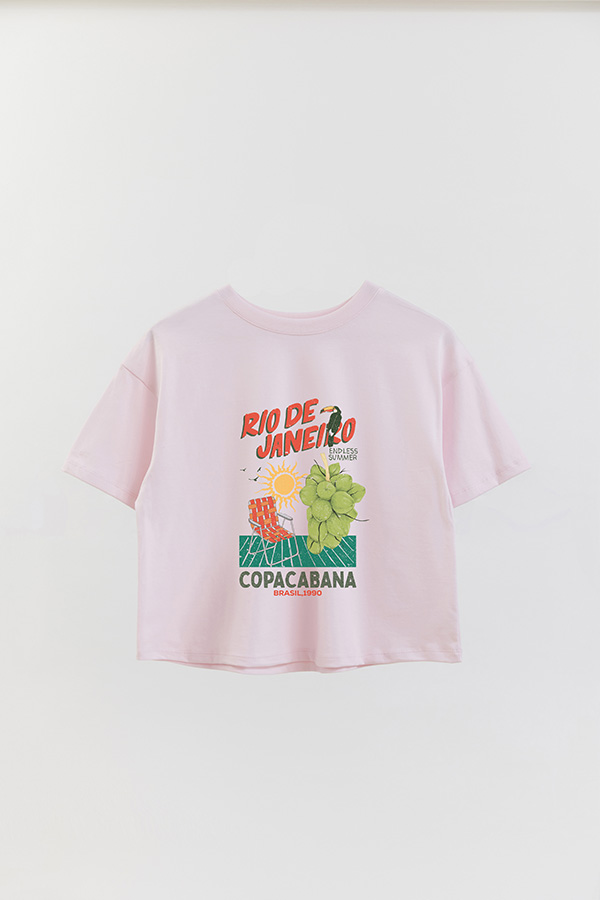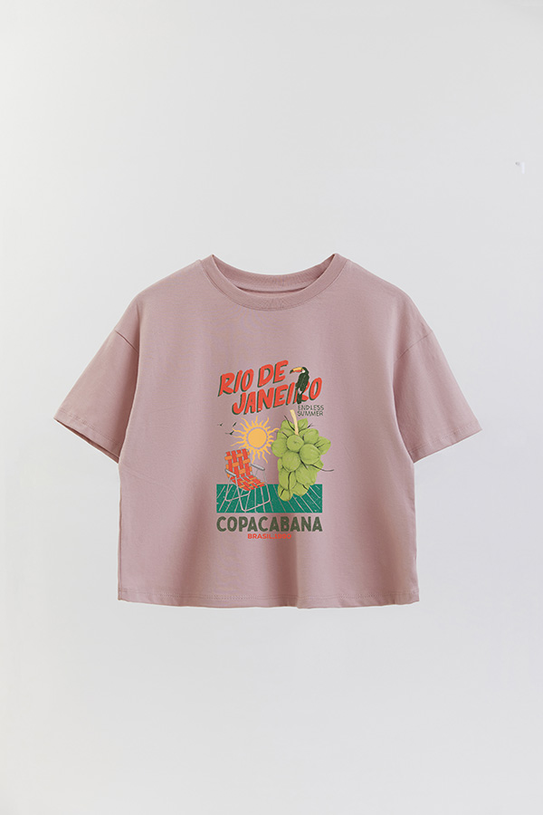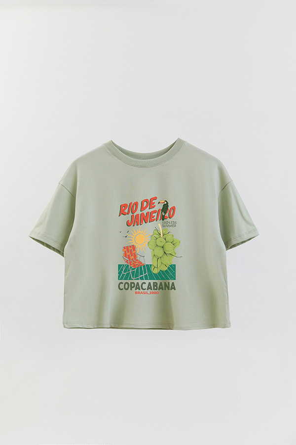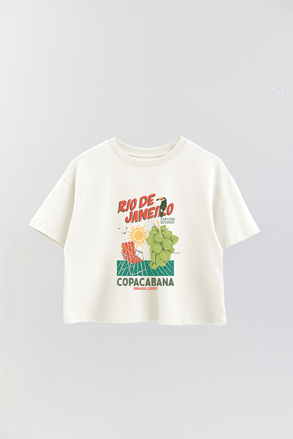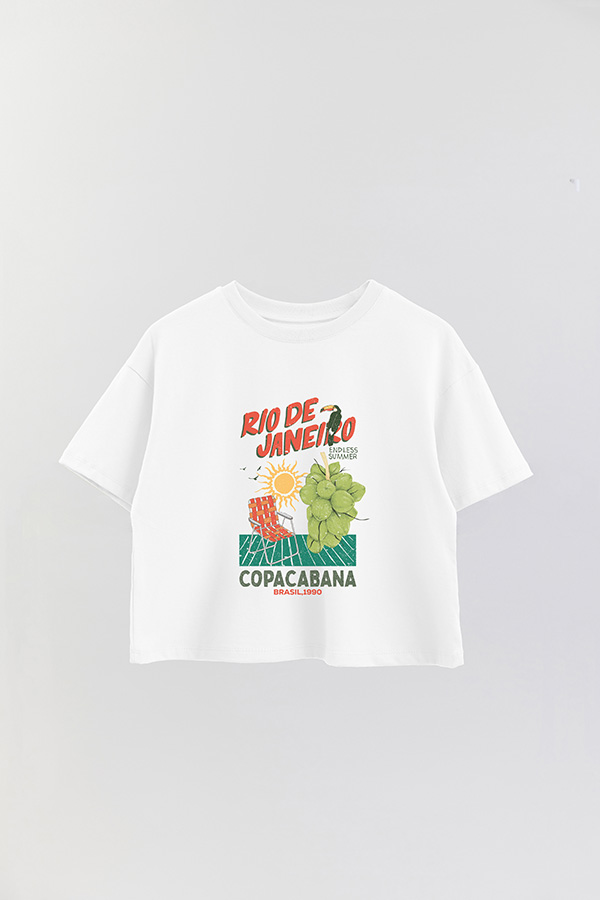 REMERA CROP ESTAMPADA RIO 1990