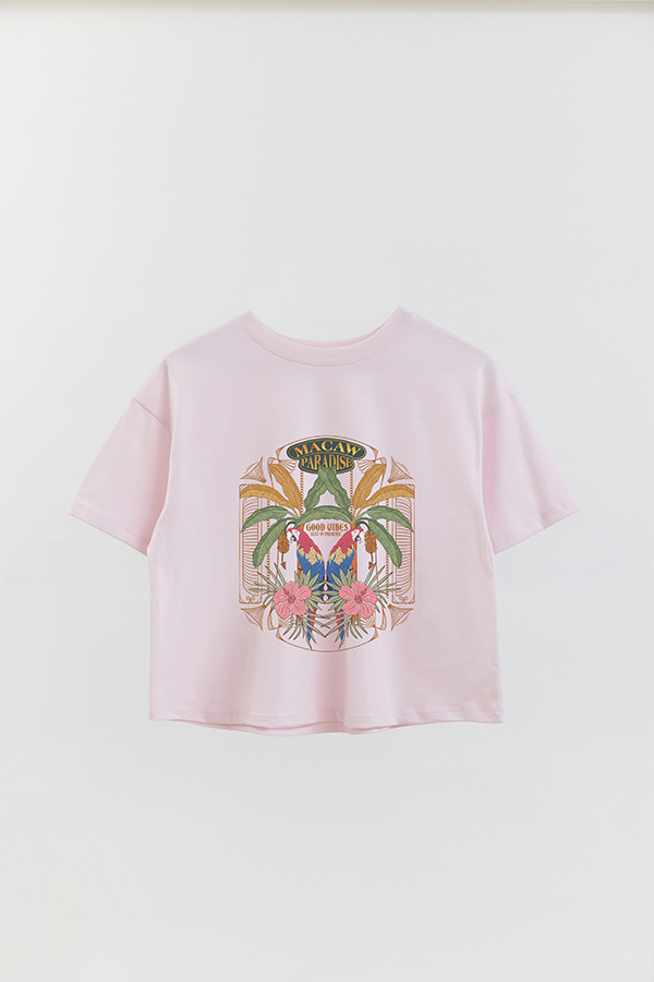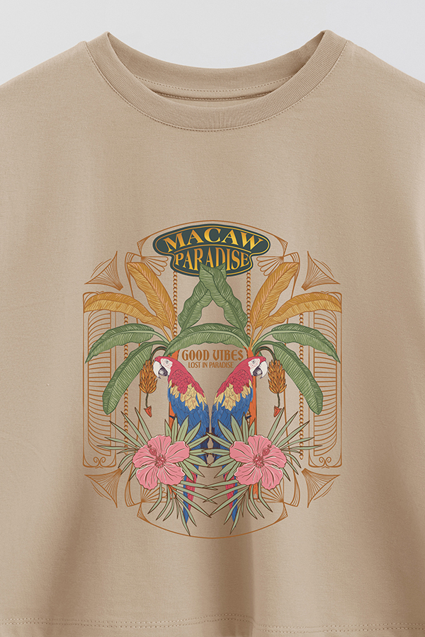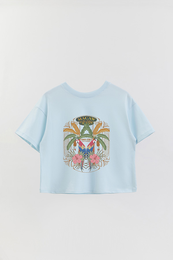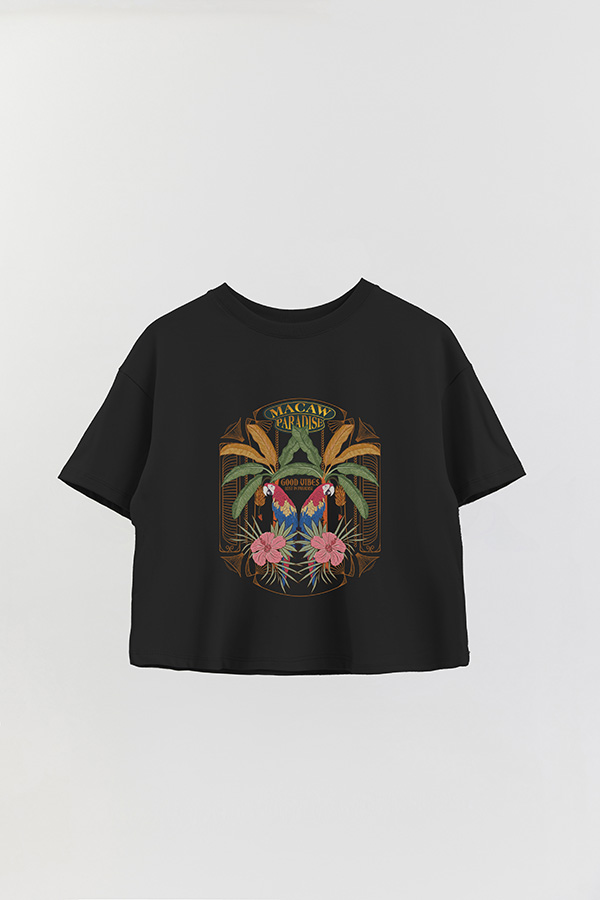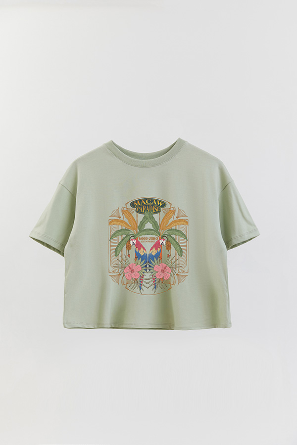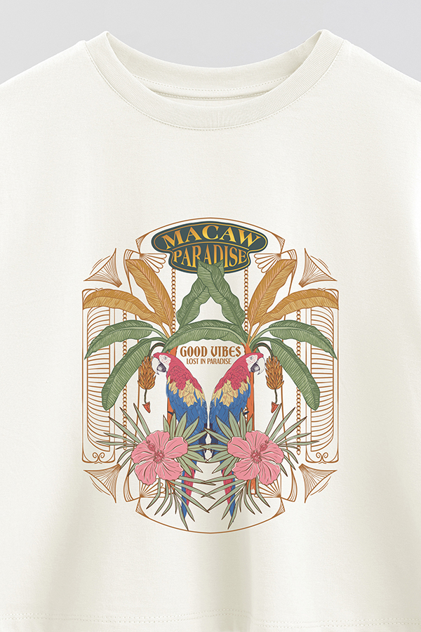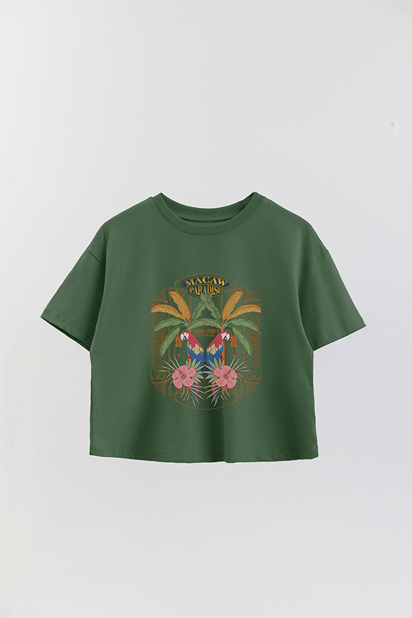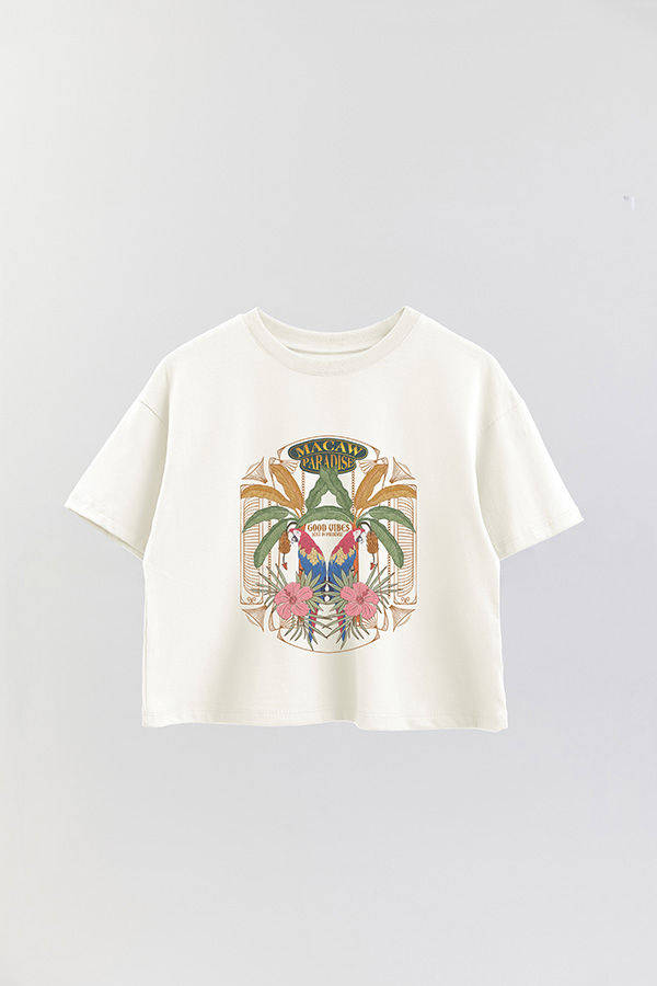 REMERA CROP ESTAMPADA PARADISE MACAW