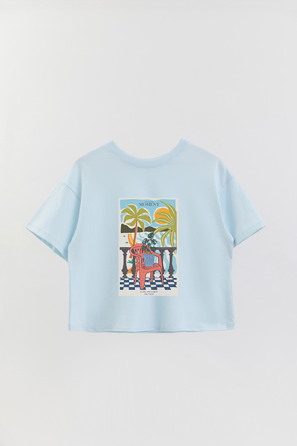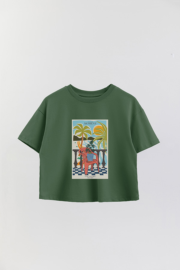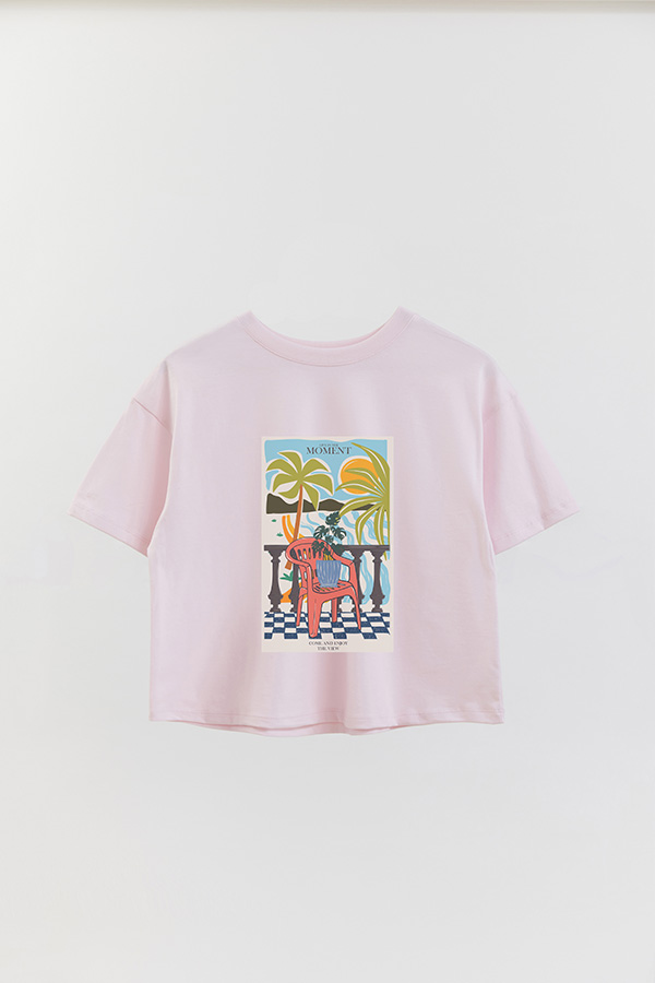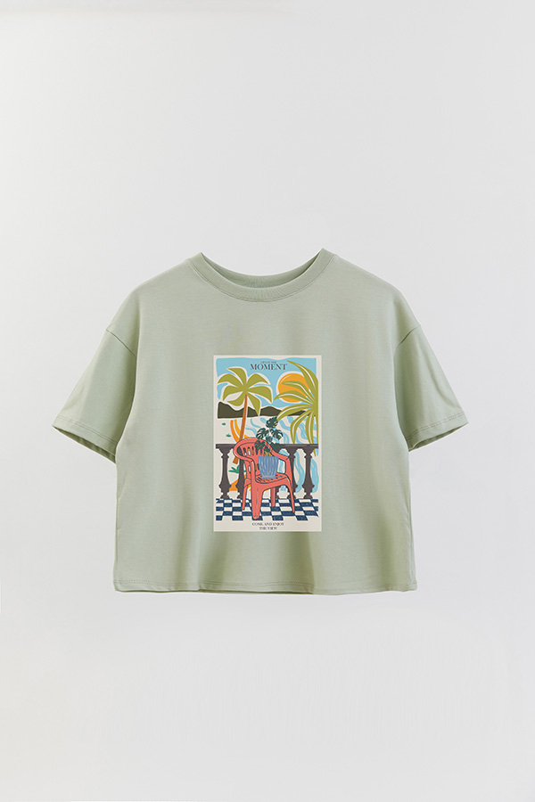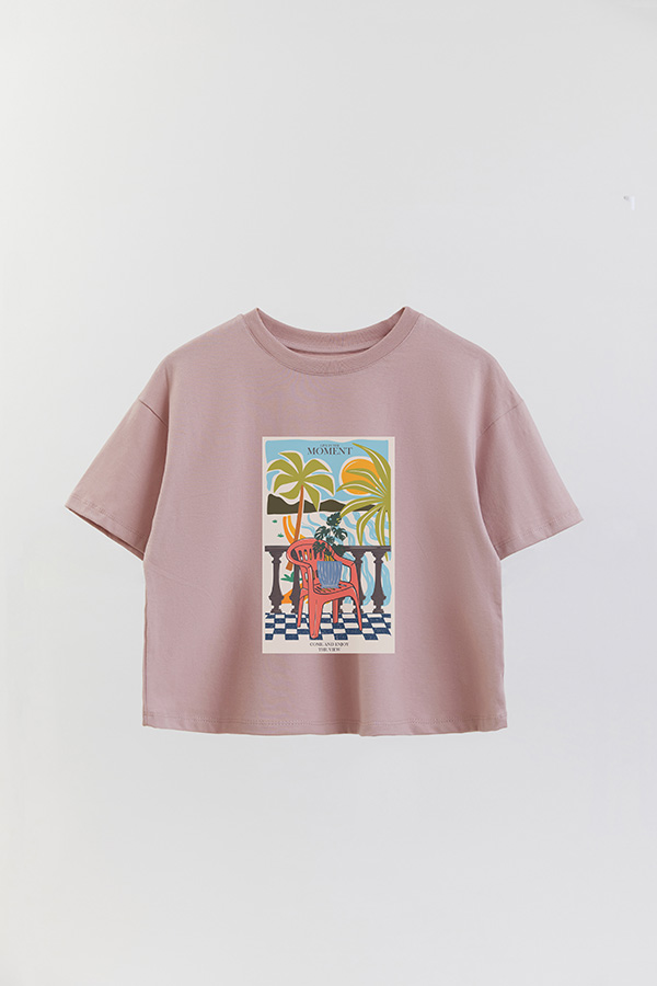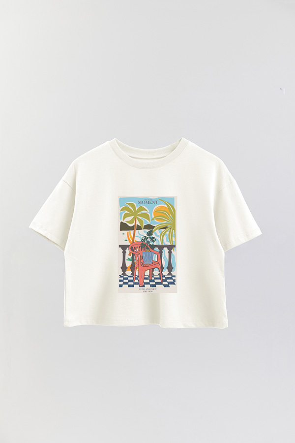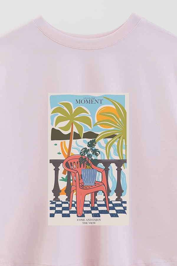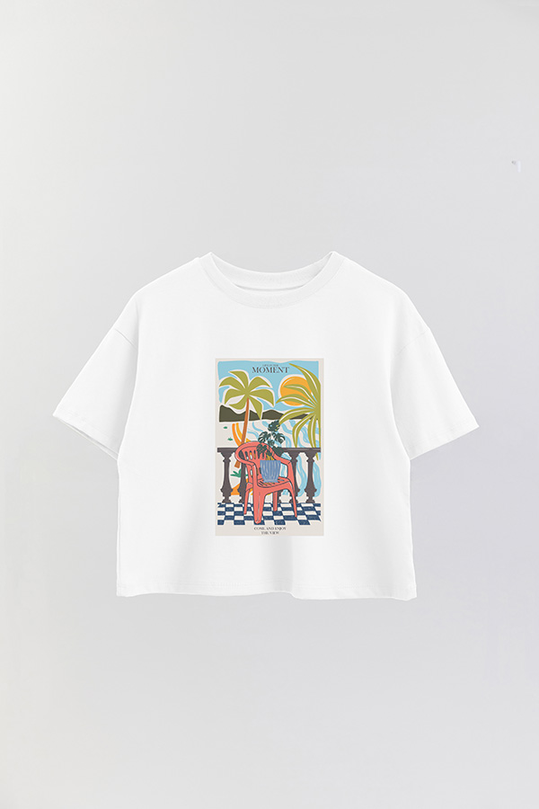 REMERA CROP ESTAMPADA LIVE IN THE MOMENT